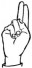 На ћирилици написано МИНА КРКИЋ састоји се из 9 слова [?]. Исписано ћириличном једноручном азбуком за глувонеме: